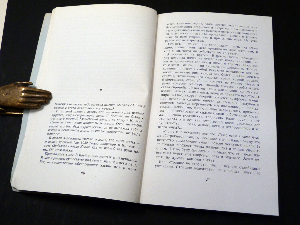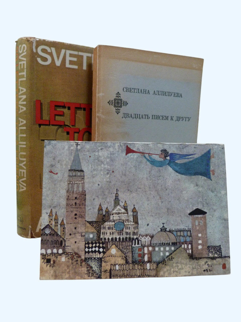 Loosely inserted in the Russia edition is a signed Christmas card from Svetlana Alliluyeva, Joseph Stalin's daughter. There is a printed greeting in five languages, plus Svetlana has written "With all good wishes for the Christmas and for the coming New Year, Svetlana Alliluyeva"