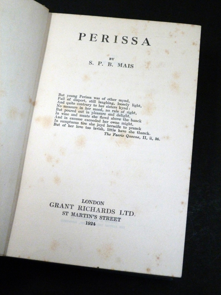 S P B Mais's third novel, appears to be a romance of a young couple as they steer a course through their life together (or sometimes not together...). Don't hold me to this precis, I might have got the wrong end of the stick from a quick look through...