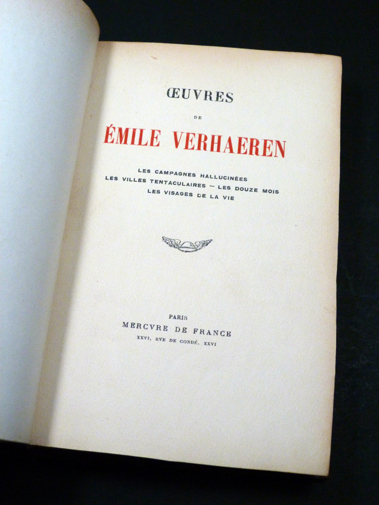 Four volumes, 1923–24, including Les Campagnes Hallucinees and Les Villes Tentaculaires