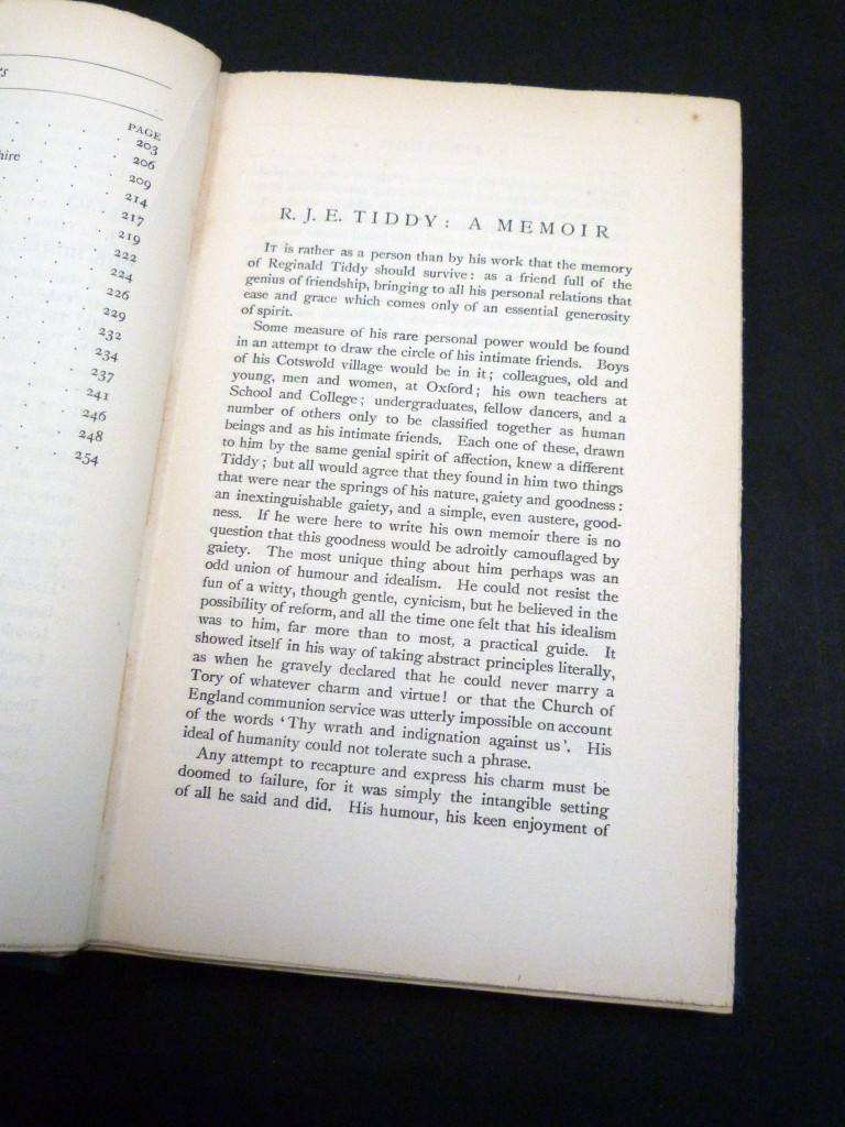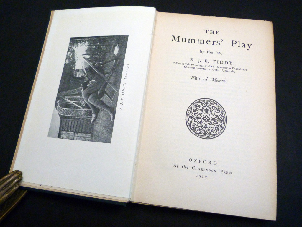 A rare book on English folk plays. The author, Reginald Tiddy, was born in Margate in 1880, and educated at Tonbridge School and Oxford (he was friends with E M Forster who was at Tonbridge at the same time, and it is believed Howards End's Tibby was named after him). He became a lecturer at Oxford where he became interested in the English Folk Dance Society and founded an Oxford branch (known as the Dancing Dons) and together with George Butterworth, he was a member of Cecil Sharp’s English Folk Dance Society Demonstration Team.