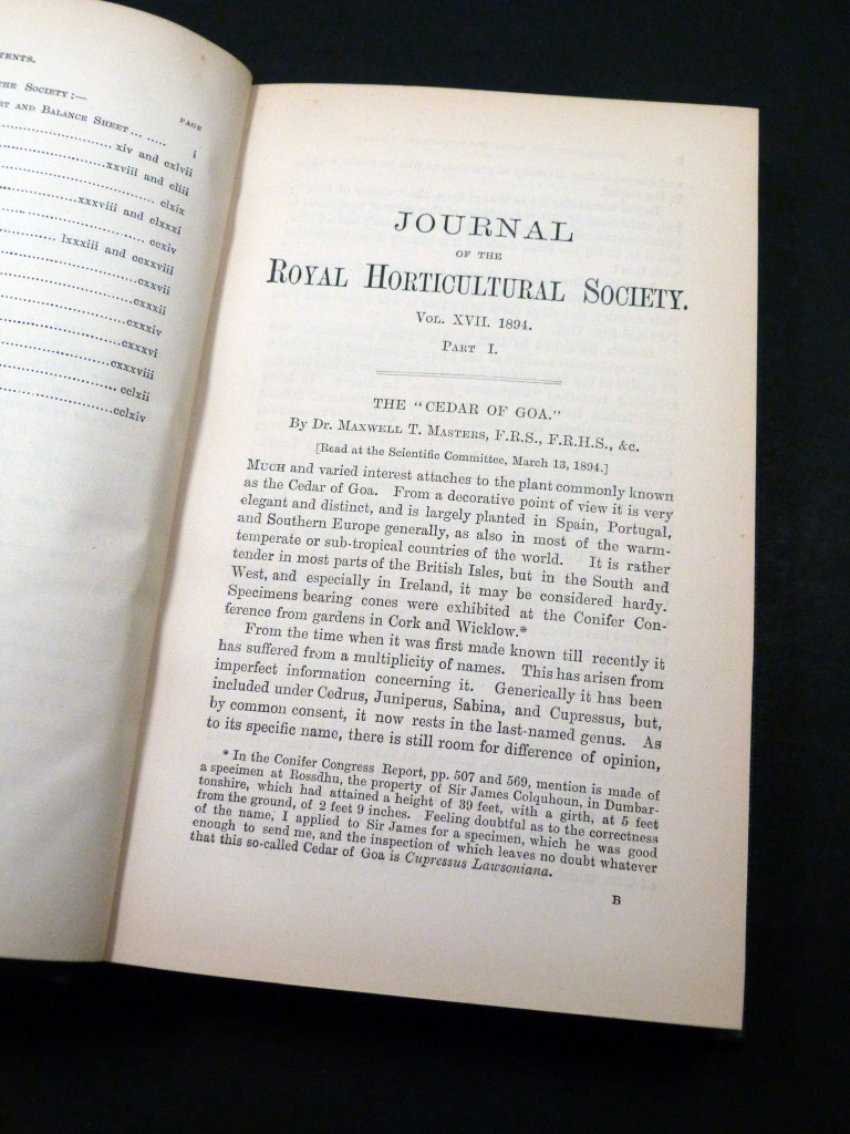 The second halves of the books are extracts from the proceedings of the Society, including reports from the Temple Show of 1894, the Scientific, Fruit, Floral, Orchid, and Narcissus Meetings, and with occasional illustration.