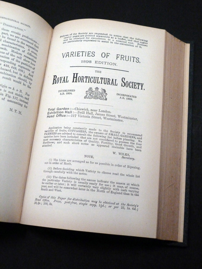 The second half contains are extracts from the proceedings of the Society, including reports from the Scientific, Fruit, Floral, and Orchid Meetings, a deputation to Shrewsbury, donors of plants etc, and with occasional illustration (some fold-out).