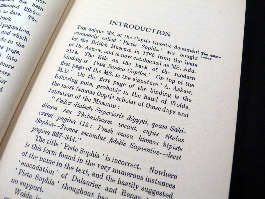 Full title: Pistis Sophia, A Gnostic Miscellany. Being for the most part Extracts from the Books of the Saviour, to which are added Excerpts from a cognate Literature