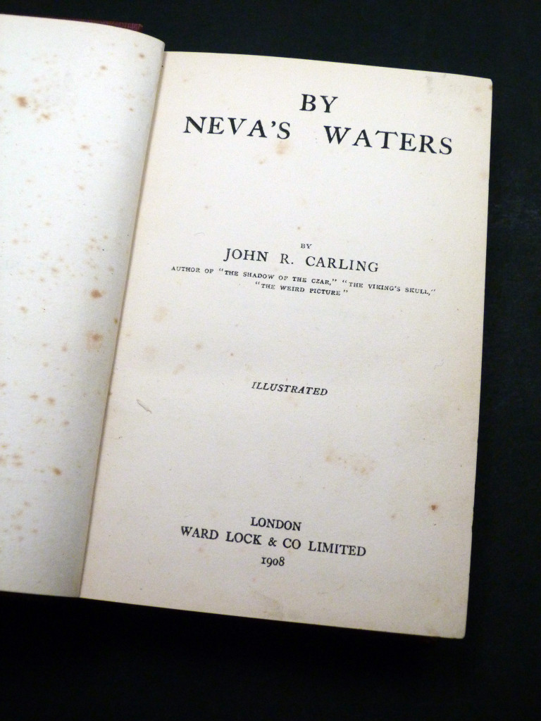 4. By Neva's Water (1908). Illustrated (artist not stated). A historical thriller concerning Alexander I of Russia. Contains just one plate. Whilst remaining readable, there is loss to the front pastedown and endpaper.