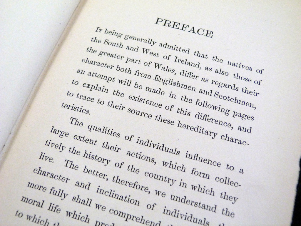 The author seems to be suggesting that the mental and moral peculiarities of differing races are as fixed as their physical characters...
