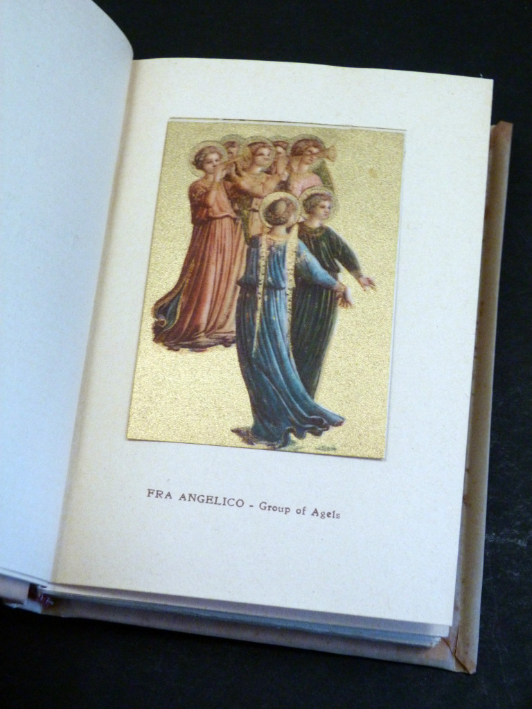 The diary was published by Giulio Giannini of Florence. The boards are covered with parchment which has a simple painted design to the front cover. The diary is titled "Nulla dies sine linea (No day without a line)" and is the sixth edition. It consists of three days per page and is interspersed with tipped in colour illustrations from the great painters of the Reniassance along with a literary quotation. It measures 13.5 × 9.5cm.