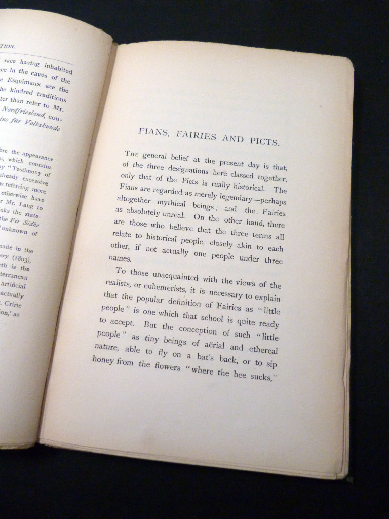 A book that blends Scottish folklore with historical detail, in which the author proposes that stories of fairies originated with an aboriginal race that occupied the British Isles before Celts and other groups arrived. MacRitchie was thought to be the founder of the euhemerist school regarding British fairies (the idea that mythological and folkloric figures have a basis in real people and races). The book is illustrated with examples of their dwellings in the Scottish isles.