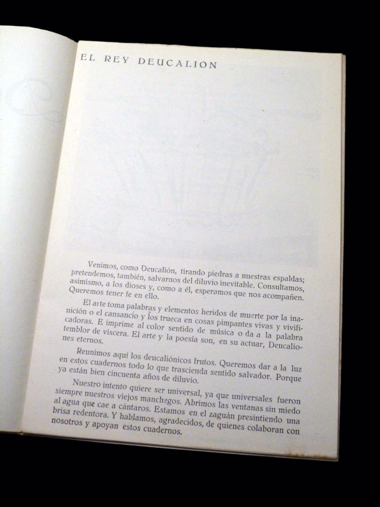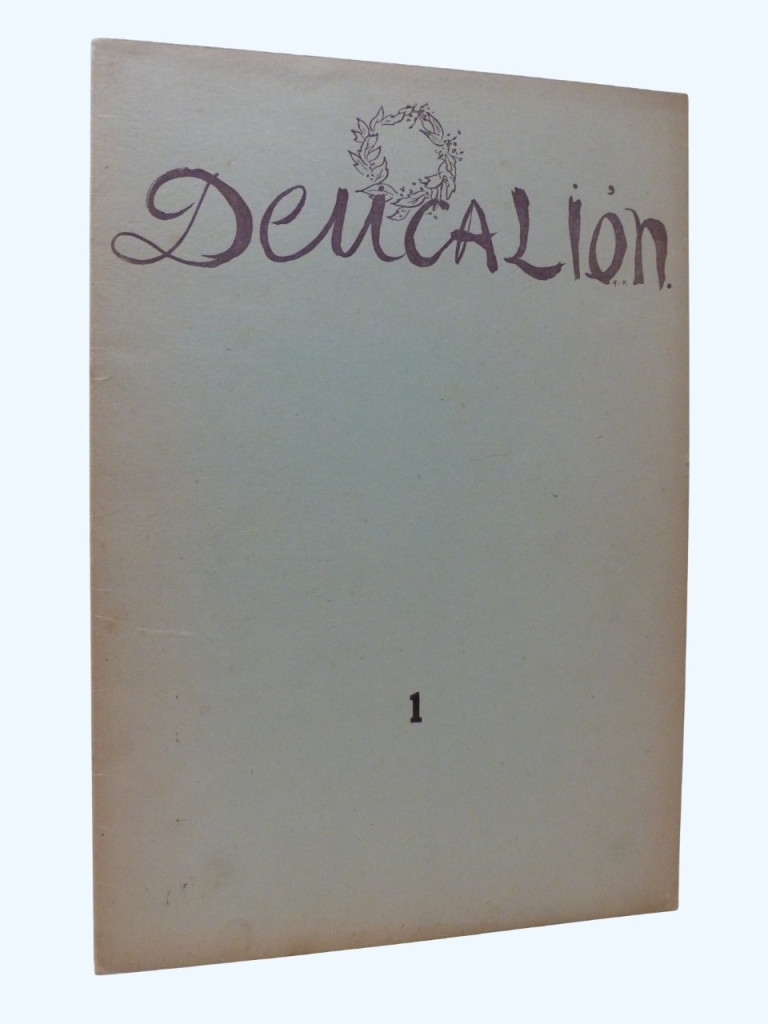 A rare first printing of the first issue of Deucalion, a short-lived but influential post-war Spanish poetry journal. It was founded and edited by Angel Crespo and ran from 1951 to 1953, it was published avoiding censorship in the strict Franco regime but was forced to close for refusing to print the Francoist symbol of yoke and arrows to the rear cover. The masthead was drawn by Gregorio Prieto.