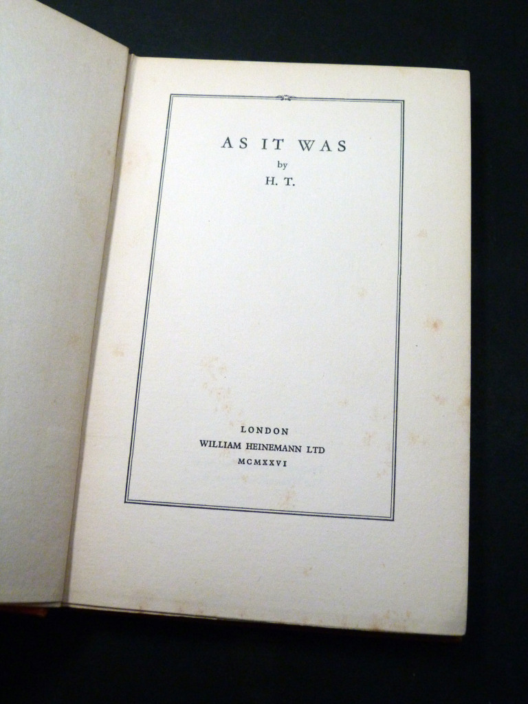 As It Was (1926, first edition, first state)