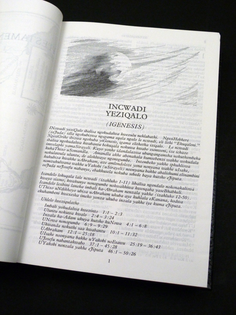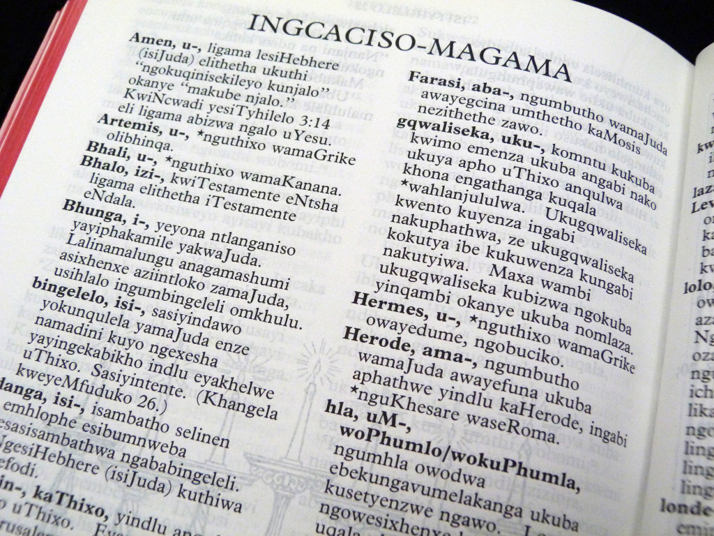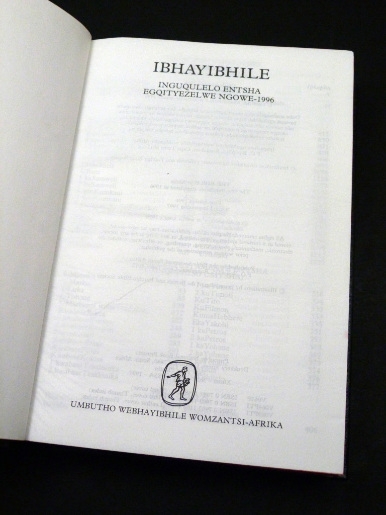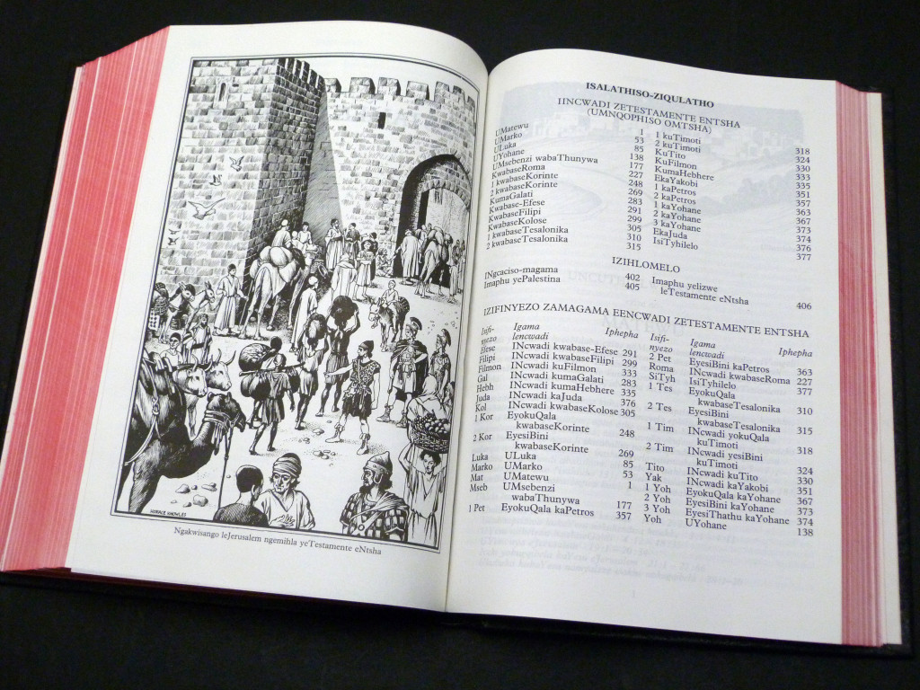 The Bible, containing the Old and New Testaments in Xhosa, a major Bantu language from Southern Africa.