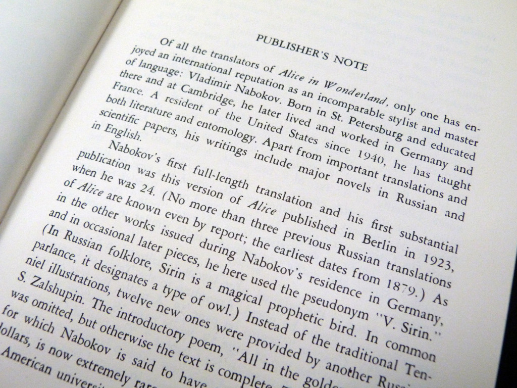 Alice's Adventures in Wonderland, the Nabokov Russian Translation