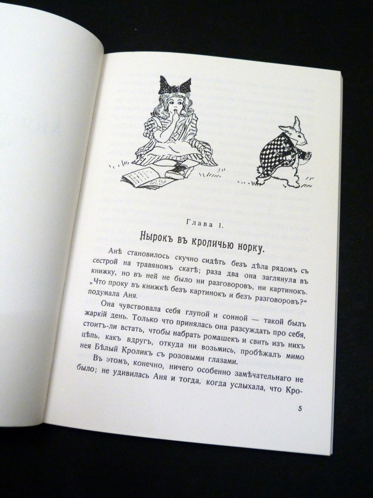 This Russian language edition of Alice's Adventures in Wonderland was first published in Berlin in 1923. From the blurb, "The translation of Alice has always presented a special problem. The narrative excitement of the child's book and the logical sense and nonsense of the adult's plus the flavour of the English puns and parodies must all be preserved." Nabokov's first full length translation achieved this fine balance.