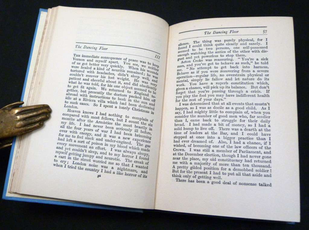 An early edition of Buchan's 1926 novel, the third of his five Leithen novels. Young Englishwoman Kore Arabin has inherited a remote Greek island, Plakos, from her unscrupulous father, who was reviled by the locals. The superstitious islanders blame Kore for every minor mishap and natural disaster, and they are about to sacrifice her as a witch in the sacred ground called 'The Dancing Floor'. Sir Edward Leithen and his acquaintance Vernon Milburne must save her.