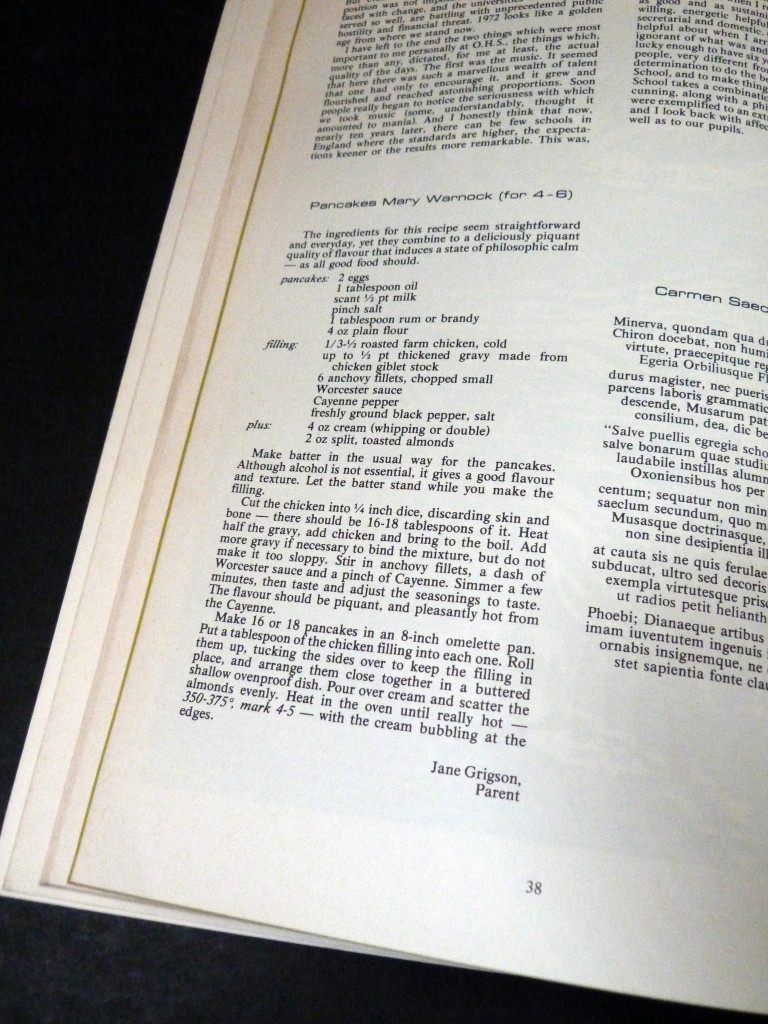 A centenary celebration of Oxford High School, with memoirs, poems, drawings etc by pupils, parents, staff etc past and present, from 1875 through to 1975. Among the many contributors are Gillian Avery on "A 'Modern Girl' of 1875, Margaret Fletcher at Oxford High School", Morton N Cohen on Lewis Carroll's visit to the school, a poem from Elizabeth Jennings (old girl), a poems by Anne Ridler (former parent), a recipe by Jane Grigson (parent) for a pancake named after a former headmistress (and a poem by her daughter Sophie Grigson), and much more, including the school calendar, university places etc etc