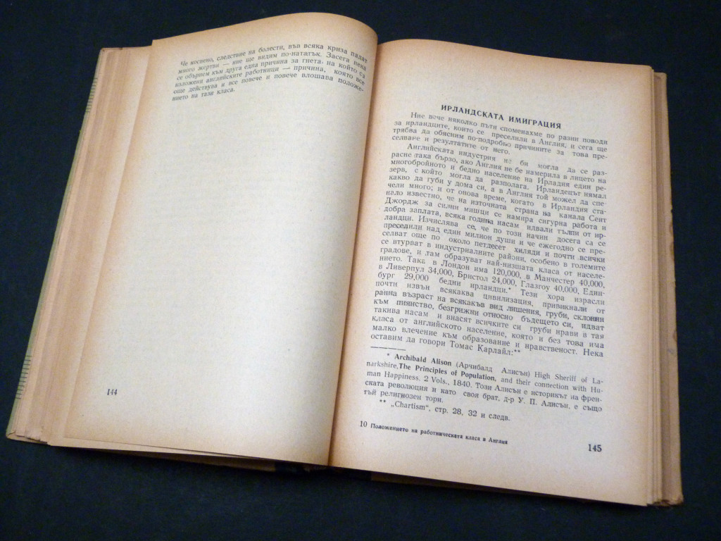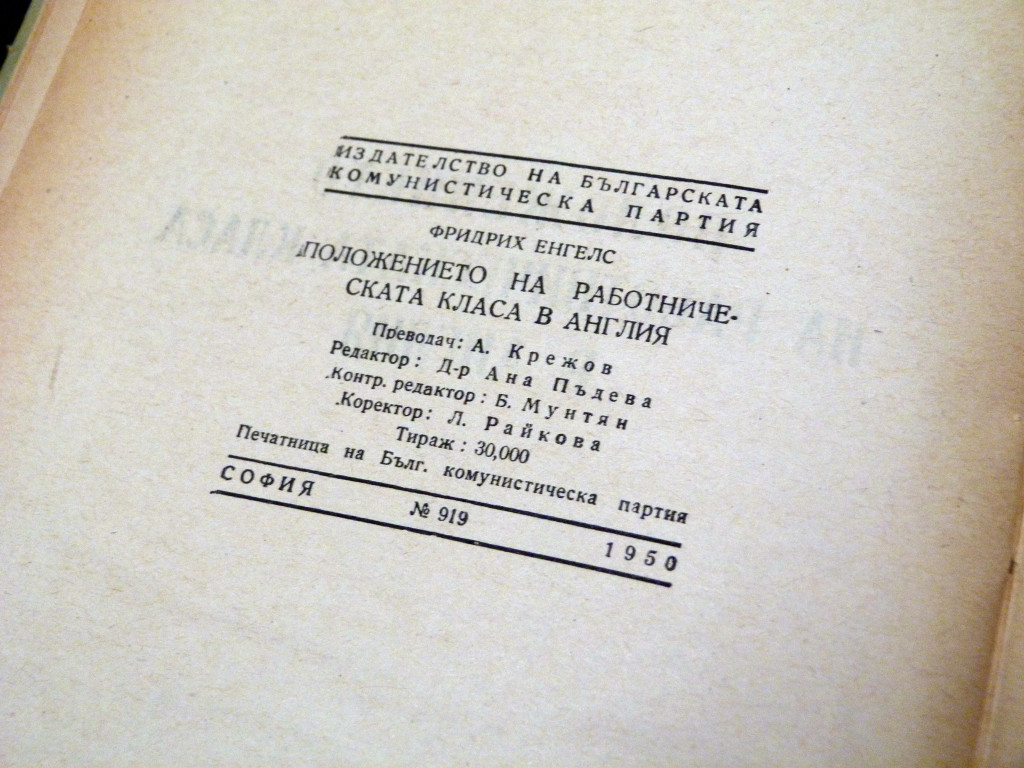 Hardback, quarter cloth with paper covered boards. Printed titling to front. 20.5 × 14cm, 400pp. Bulgarian text.