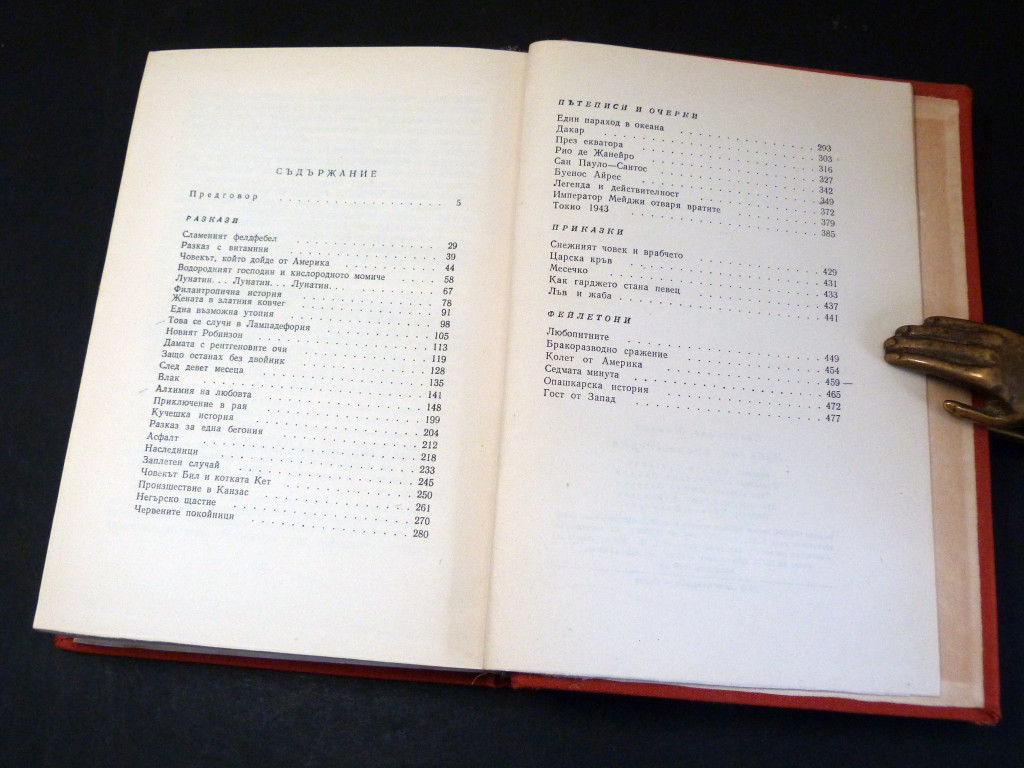 A rare selection from a renowned figure in Bulgarian fiction, leading light of the Bulgarian absurdist fiction movement, and often referred to as the father of Bulgarian science fiction and horror. This book has four sections: firstly a collection of twenty-five short stories including his most famous (The Lady with the X-ray Eyes), as well as The Hydrogen Gentleman and the Oxygen Girl, The Woman in the Golden Coffin etc, the second section is travelogues , the third is Fairy Tales and the fourth is feuilletons / satirical sketches.