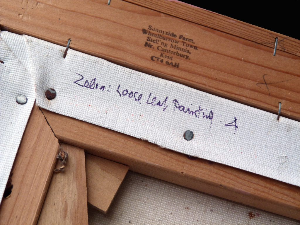Painted in 1990, this is an original oil in canvas in a bespoke frame, coloured by the artist to complement the painting. The whole measures 44.5 × 34cm, and the painting measures 25 × 36cm.