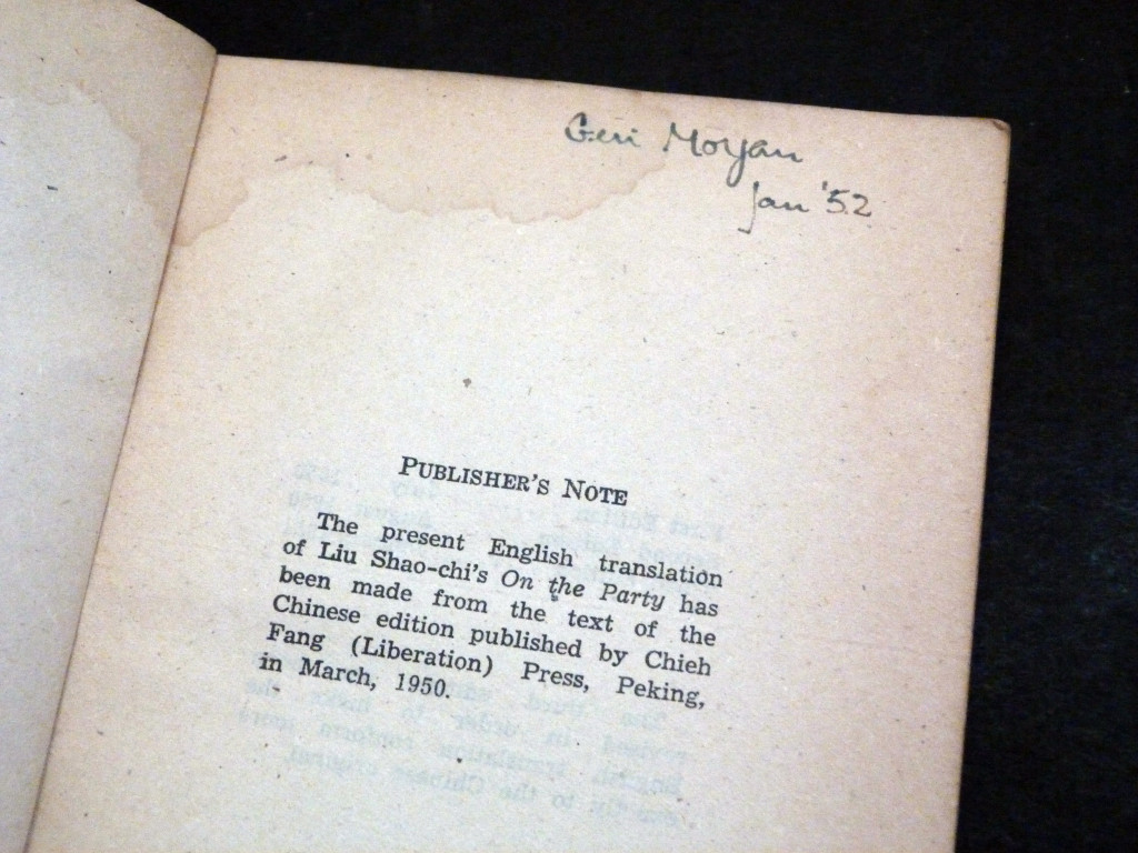 This copy was owned and signed by Geri Morgan, once to the ffep, and again (with date, 1952) to the following page. Geri Morgan (1926–2010) was best known as an artist and the principal of the Byam Shaw School of Art, his early life and career were deeply rooted in radical left-wing activism and the Socialist Realist movement of the 1950s. He joined the Brighton branch of the Communist Party in 1942 and post-war (he was a Bevin Boy), he was a committed member of the Artists’ International Association (AIA), a group founded to promote left-wing and anti-fascist causes through art. By the late 1950s his political activism was waning, and although his beliefs remained, he decided to keep his political and his artwork separate.