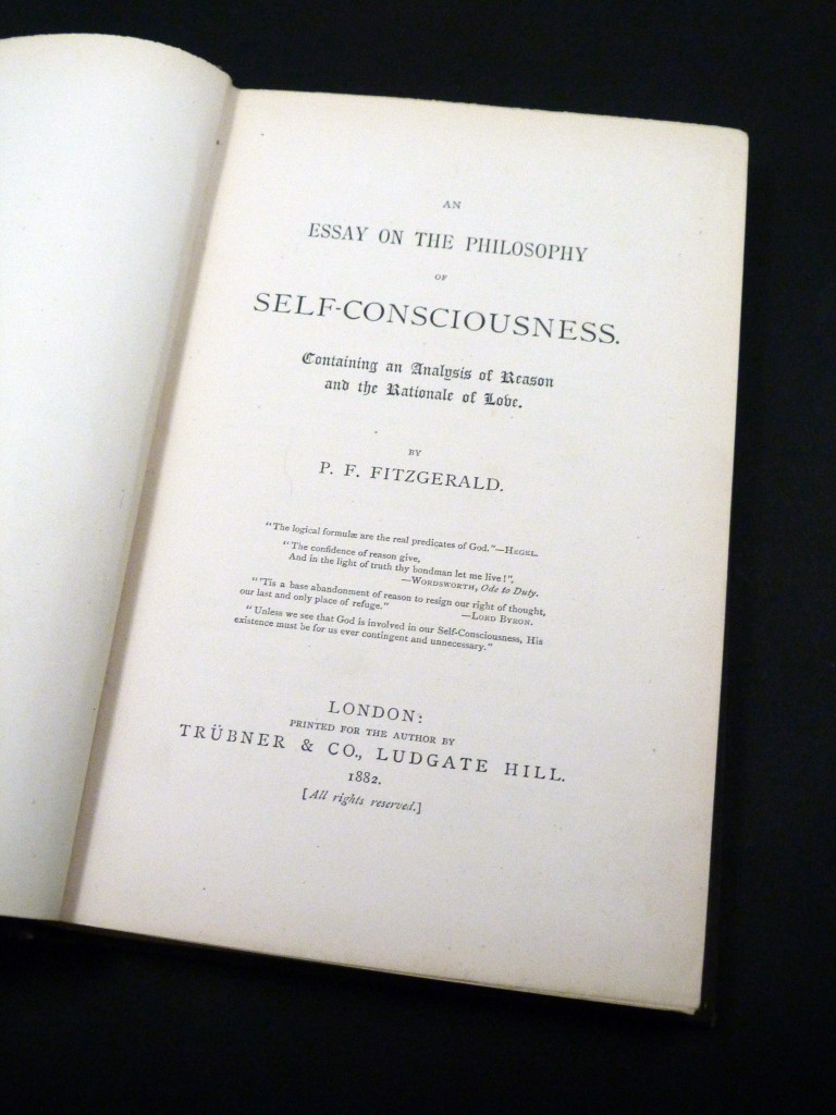 P. F. Fitzgerald was a late-19th-century philosopher who attempted to reconcile reason, religion, and emotion. In this specific work, she argues that self-consciousness is the ultimate proof of a higher power. She writes about the "Rationale of Love", this is perhaps the most unique part of her work. She treats love not just as a feeling, but as a logical extension of human reason and the "highest form" of self-consciousness, and the Integration of Faith in which she is trying to bridge the gap between rigorous logic and poetic/spiritual experience.