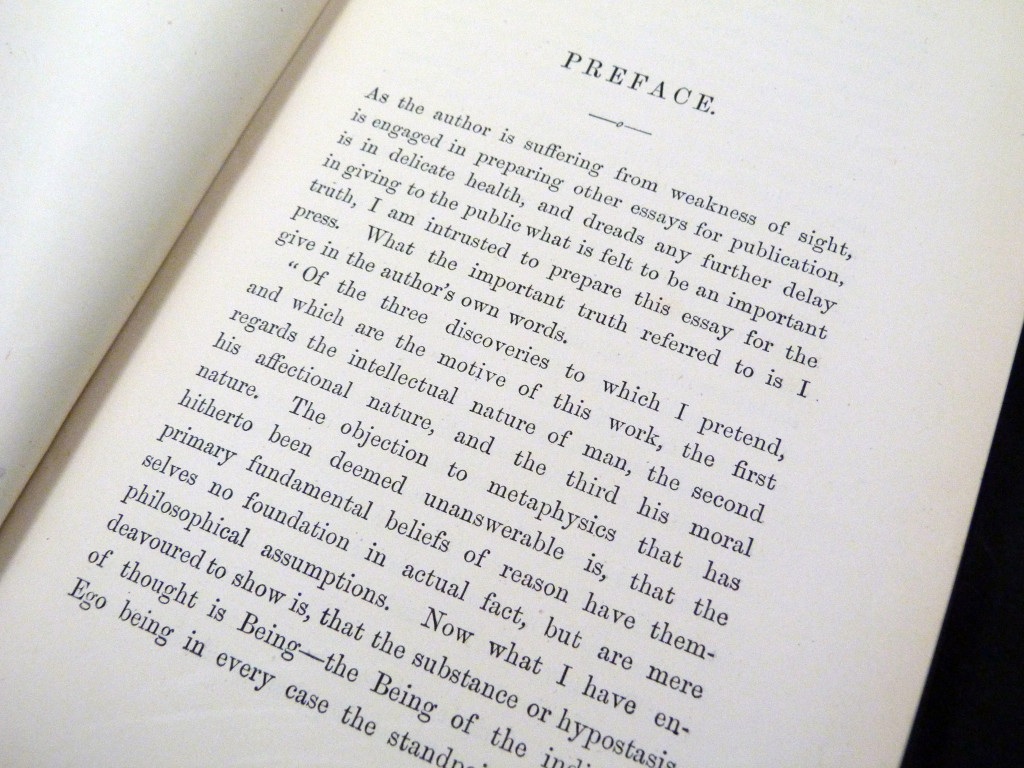 Full title: An Essay on the Philosophy of Self-Consciousness, Containing an Analysis of Reason and the Rationale of Love
