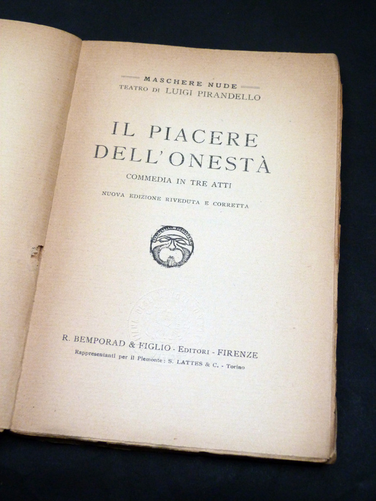 Il Piacere dell'Onestà (The Pleasure of Honesty) No XIII, 1925. Explores the irony of a man who lives "too" honestly, to the point where it makes everyone around him uncomfortable.