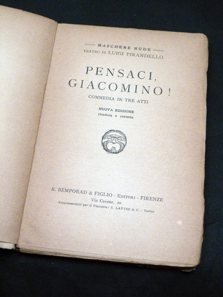 Pensaci, Giacomino! (Think it Over, Giacomino!) No X, 1925. One of his earlier successes, focusing on an aging teacher who attempts to subvert social norms by marrying a young woman just to ensure she receives his pension after he dies.