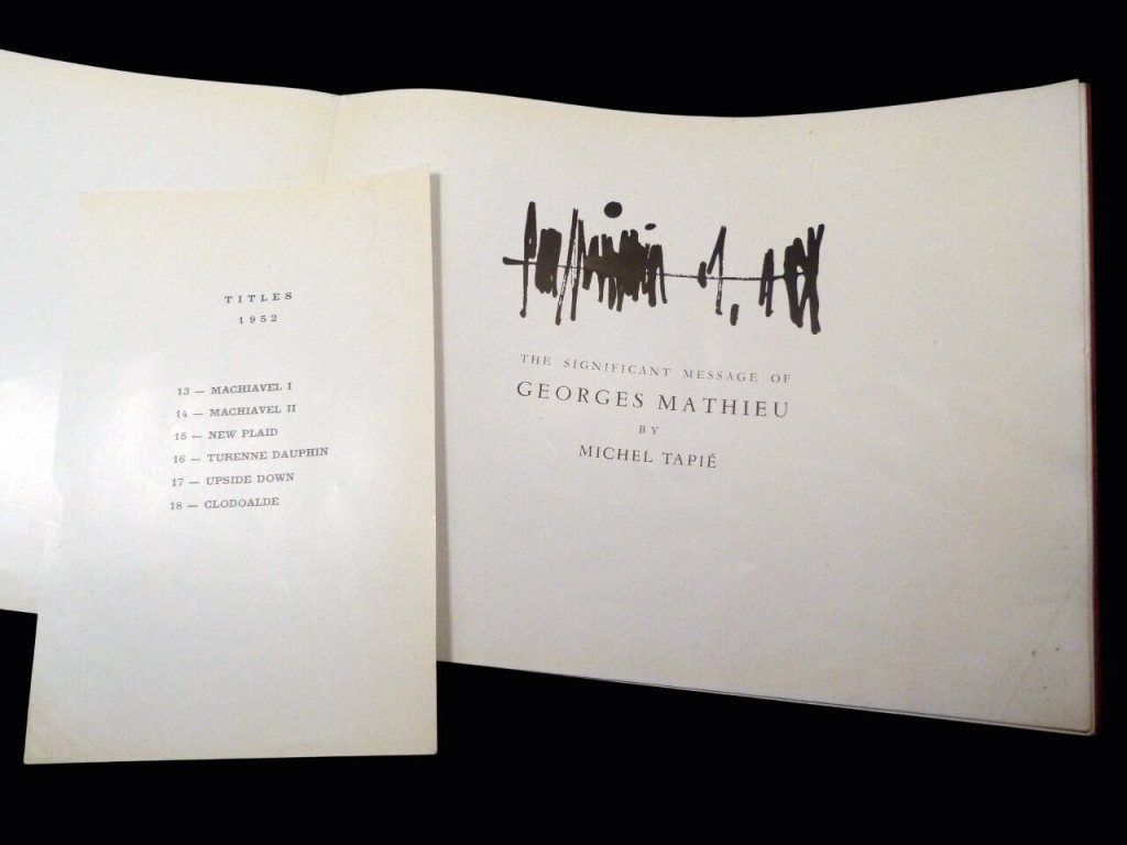 The book for Mathieu's first solo US exhibition and an important development in the Art Informel movement