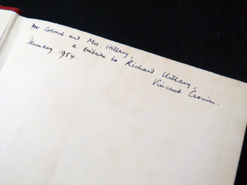 Signed by Vincent Cronin to the parents of WW2 pilot Richard Hillary, and winner of the Richard Hillary Prize (1955)