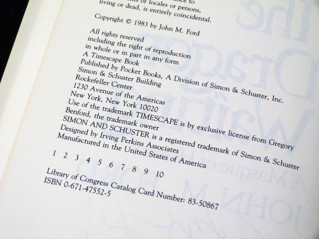 Signed and dedicated by John M Ford at Fantasycon IX in Birmingham in September 1984