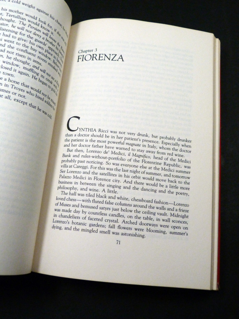 A novel of alternate history. The story follows an unlikely band of four mercenaries/misfits who are drawn together to stop the Byzantine expansion and place Richard III on the throne of England. The four are Hywel Peredur, a Welsh wizard with a grudge against the Empire; Dimitrios Ducas, an exiled Byzantine soldier and expert tactician; Cynthia Ricci, a brilliant female doctor from Florence fleeing political intrigue; and Gregory van Kalemstout, Flemish vampire (in this world, "vampirism" is a medical condition). In this world, 15th century, the Roman Empire never converted to Christianity, and as a result, the Byzantine Empire has grown into an unstoppable, sorcerous superpower that is slowly swallowing Europe.