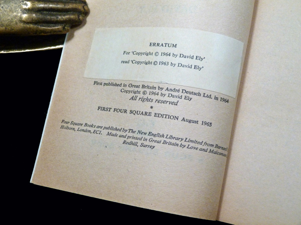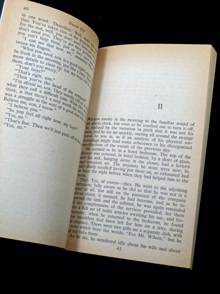 First paperback edition of David Ely's dark, existential thriller