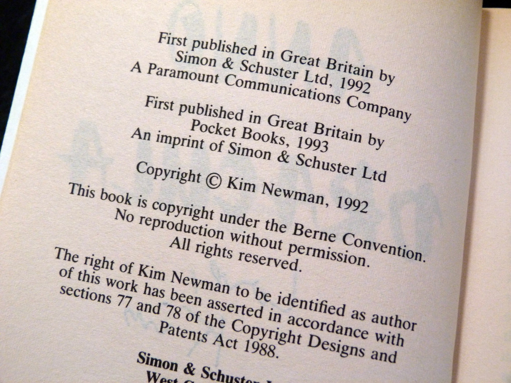 This copy has been signed and dedicated to the title page by Kim Newman with a little smiley vampire face.