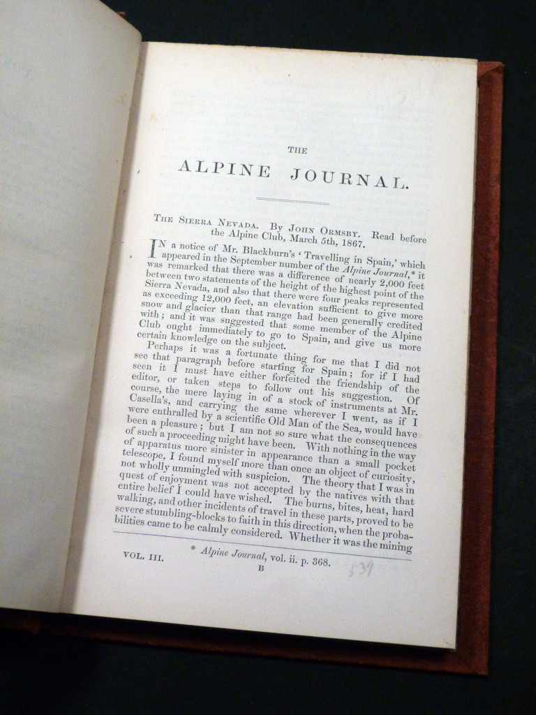 The Alpine Journal, Vol III, 1867