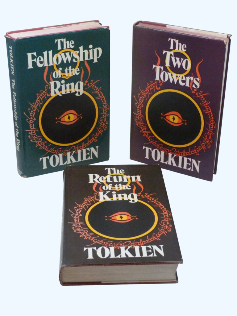 Second edition, ninth impression. Three volumes, complete. Hardback in dustwrapper. 23 × 14.5cm, Fellowship: 423pp. Two Towers: 352pp. Return: 440pp, and each with a folding map to rear.