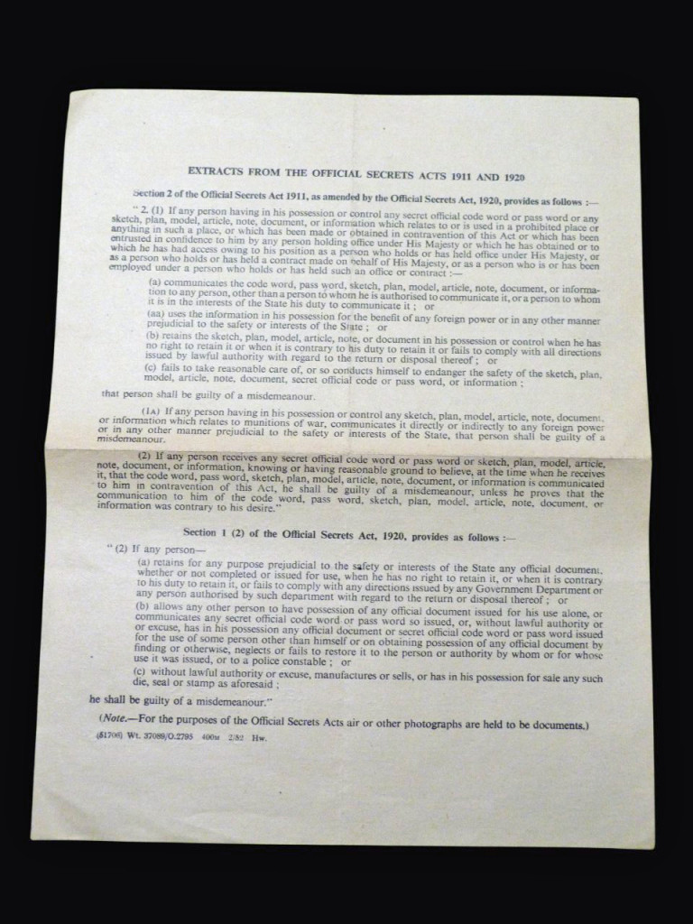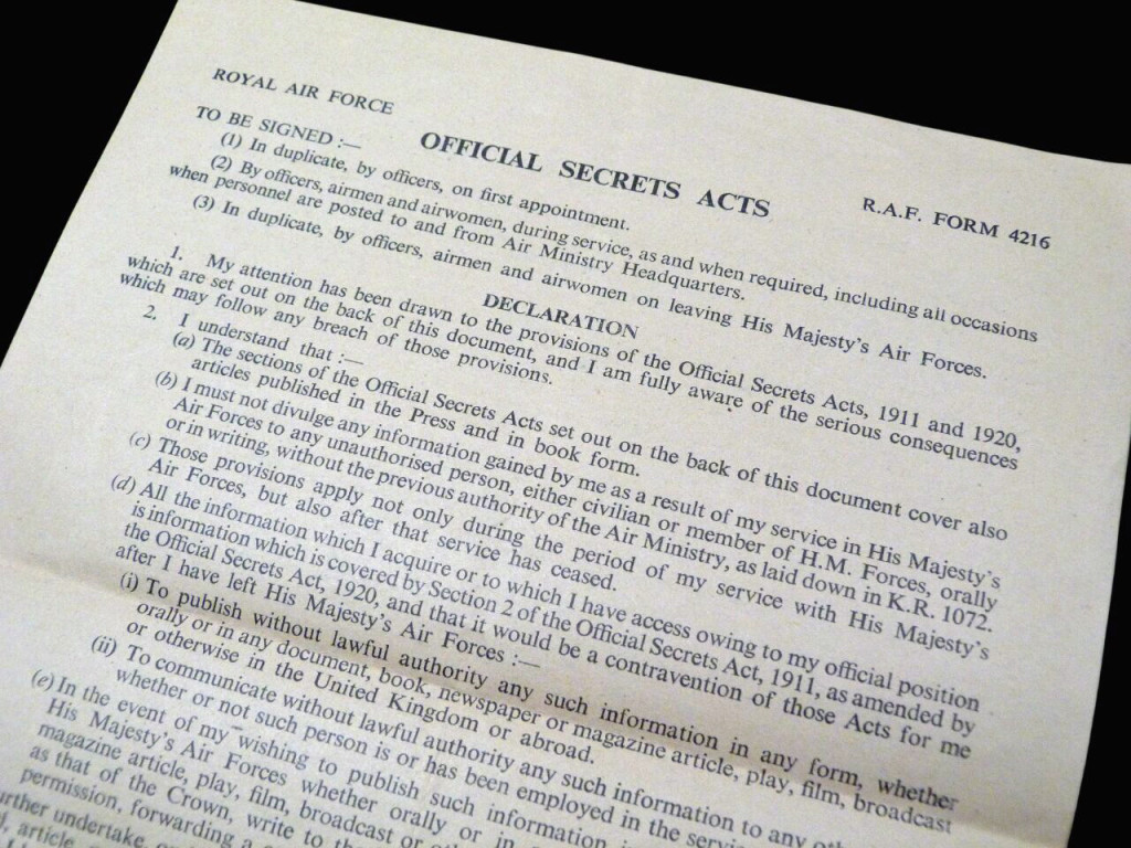 Original 1959 signed Official Secrets Act (RAF)