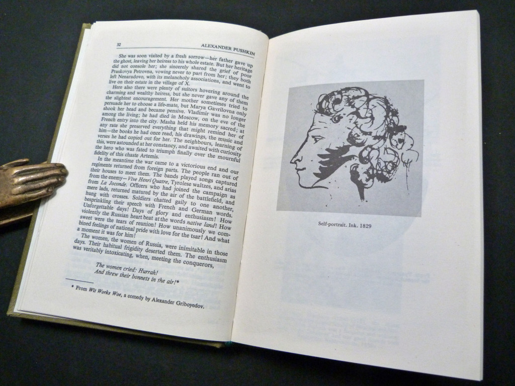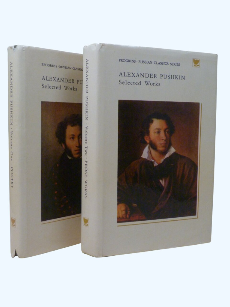 A good selection of Pushkin's works. The poetry begins with Tvardovsky's The Soul of our People, followed by Pushkin's lyric poems, narrative poems, dramas, and tales in verse. The prose contains The Tales of the Late Ivan Petrovich, Belkin, The Queen of Spades, and The Captain's Daughter. Both volumes have colour and black & white illustrations of portraits, scenes from Pushkin's life etc.