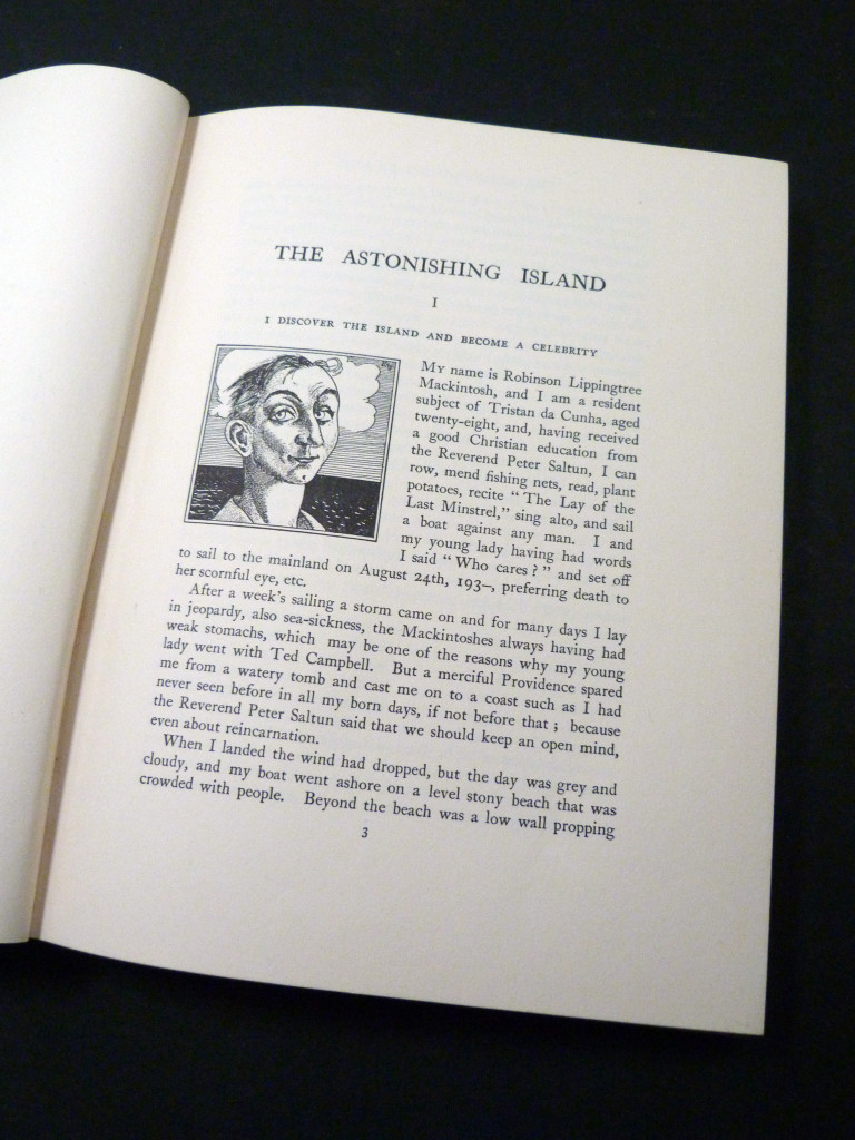 Full title: The Astonishing Island, Being a Veracious Record of the Experiences Undergone by Robinson Lippingtree Mackintosh from Tristan da Cunha During an Accidental Visit to Unknown Territory in the Year of Grace MCMXXX-?