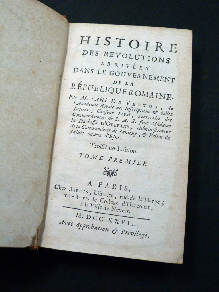 1727, volume one of L’Abbé de Vertot's history of the political shifts of Rome