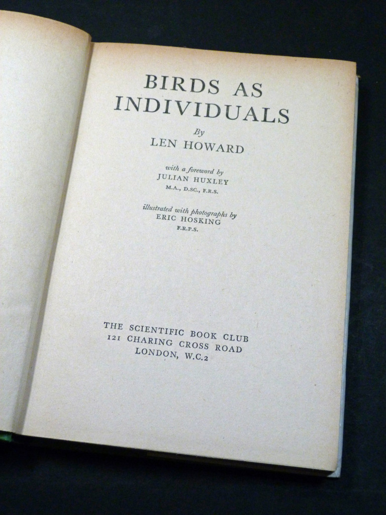1953, the Scientific Book Club's edition of Len Howard's classic title