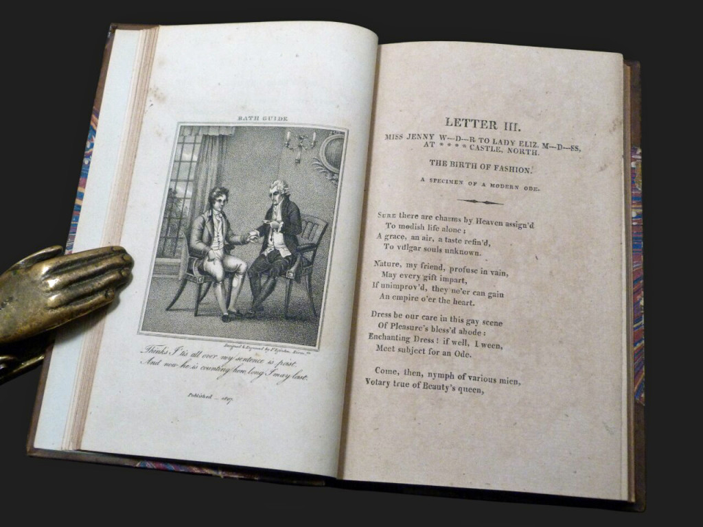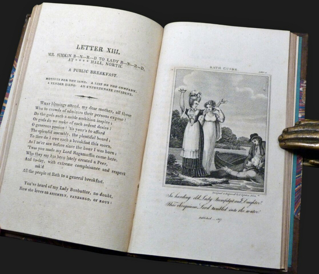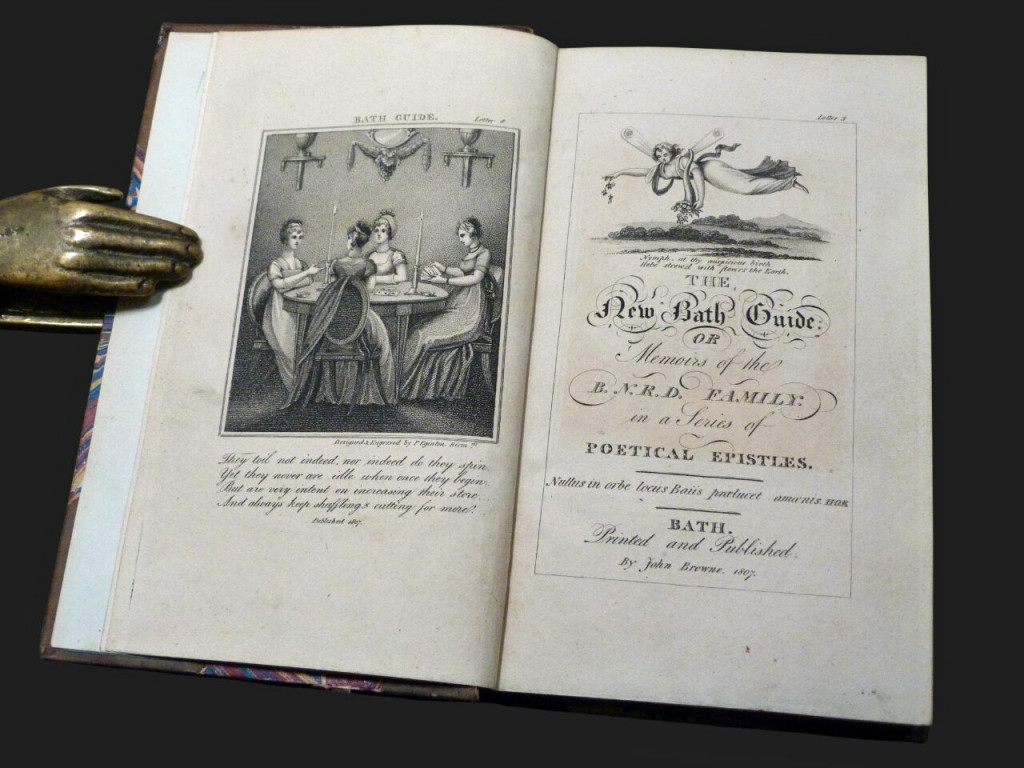 Anstey's classic Georgian satire, first published in 1766, which describes in verse the Blunderhead family as they navigate the fashionable social rituals of Bath. This copy with the full complement of engraved title page, frontispiece and ten plates by Francis Eginton.