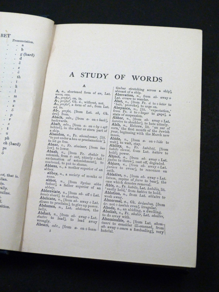 An important contribution to the field of English philology and etymology during the early 20th century, written as an introductory guide to the etymology and evolution of the English language. Arranged alphabetically, this book gives the root origins of how English words evolved from Latin, Greek, and Saxon roots etc.