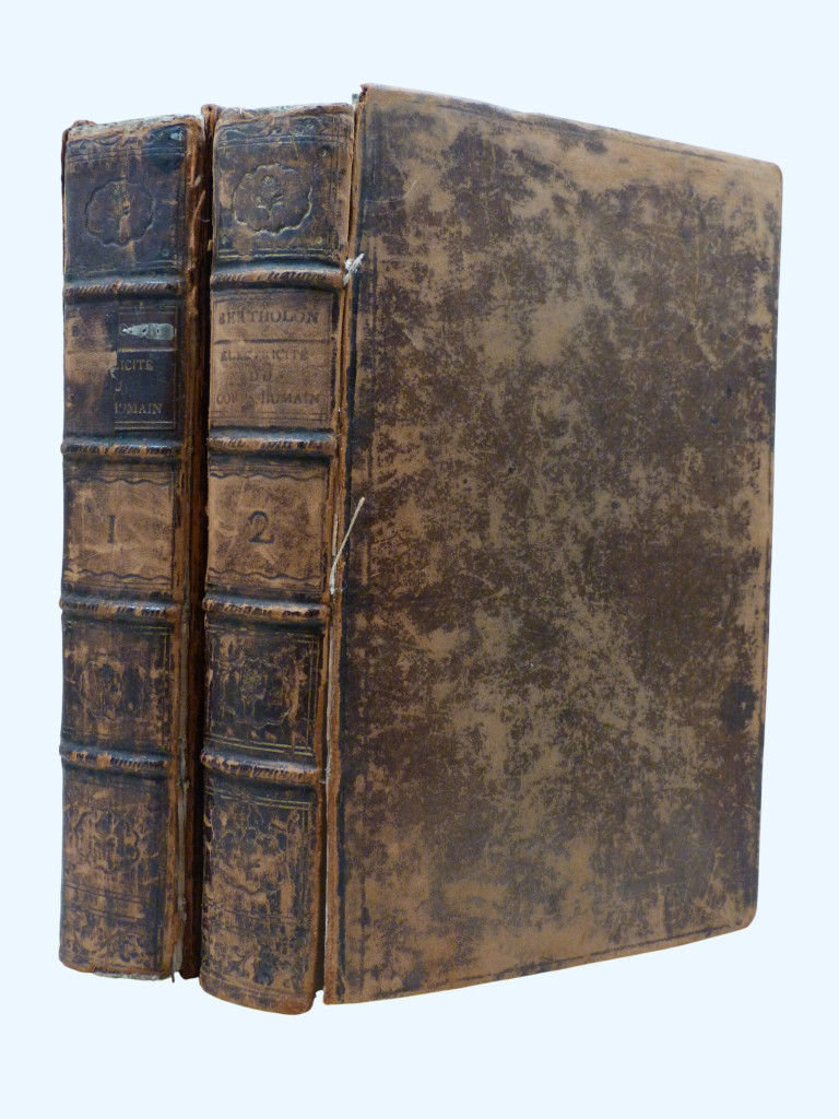 Two volume (complete) of Bertholon's study of electricity and health, with six plates