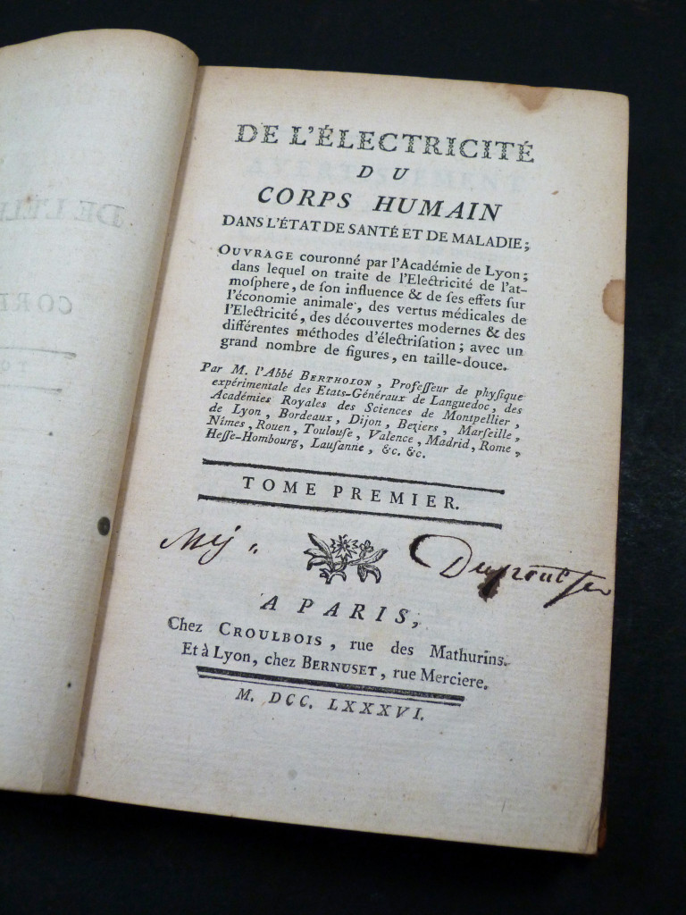 De L'électricité du Corps Humain dans l'état de Santé et de Maladie (1786)
