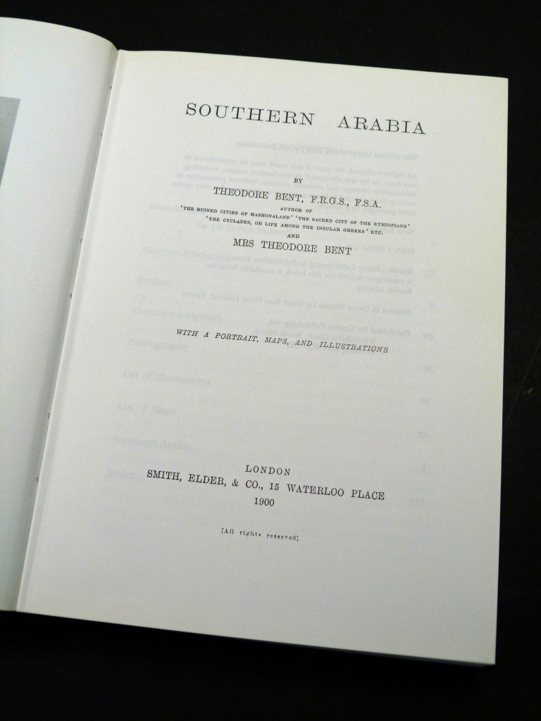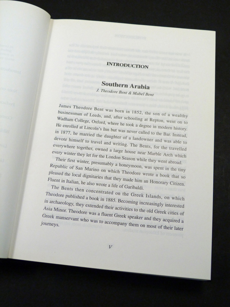 A facsimile copy of the 1900 edition. Theodore Bent, well established as a travel writer and archaeologist, made seven journeys in all around the southern part of Arabia including Oman and Dhofar. Accompanied always by his wife, the author devoted the last years of his life to observation and travel in these lands. This account of the couple's travels, first published two years after Bent's death, is a fascinating picture of the lands, peoples and history of Southern Arabia. Illustrated with maps and photographs.