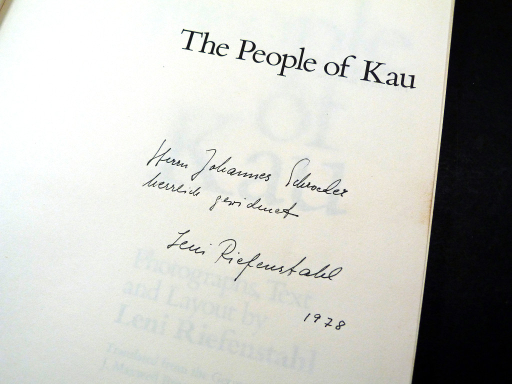 Signed and dedicated by Leni Riefenstahl to the half-title page. The inscription is in German and to Herrn Johannes Schroeder, dated 1978.