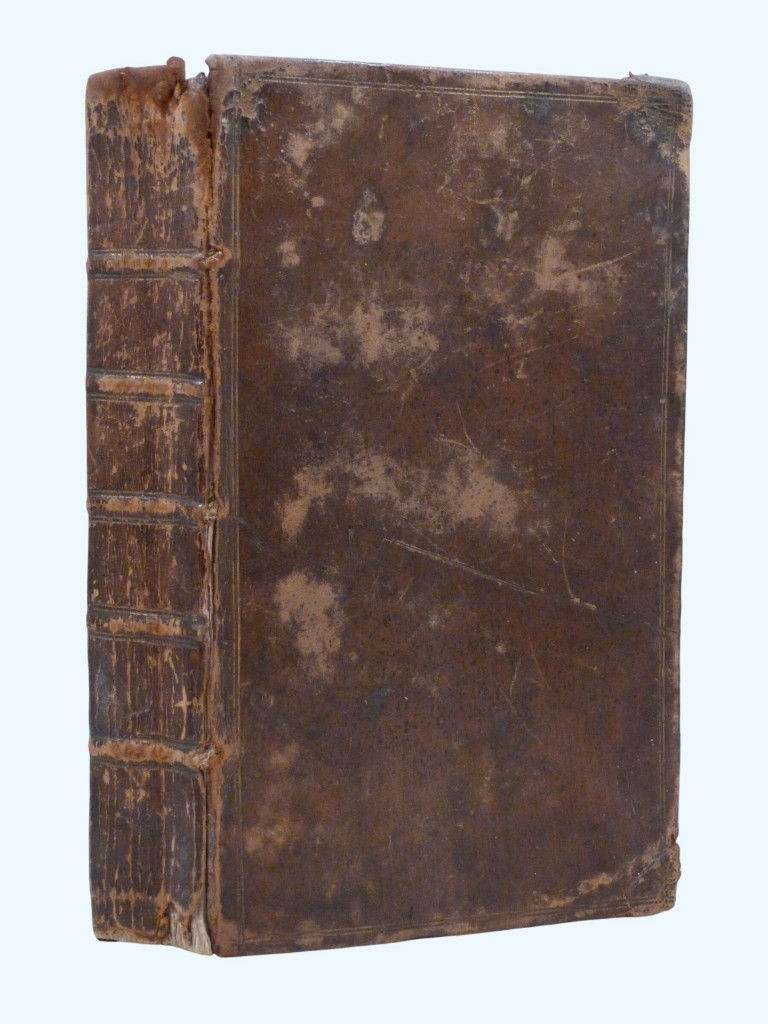 Fair to good. The leather is heavily rubbed, with slight loss to the spine ends and the front joint is weak. The book lacks the front endpaper but the main body of text has strong binding and remains in a good readable state. The pages slightly age-toned with occasional foxing. Previous owner's name to both front and rear pastedowns.
